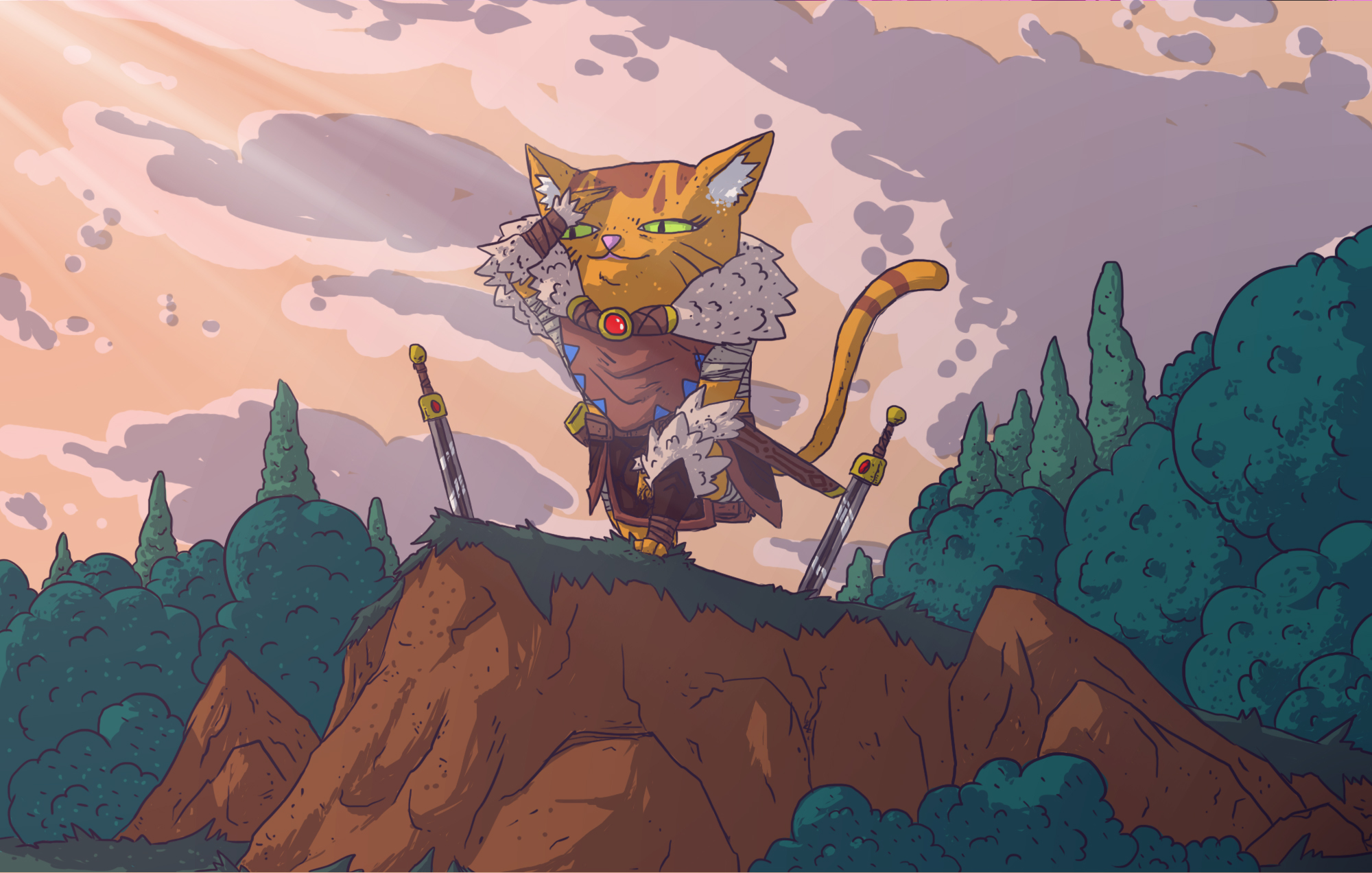 Embark on a feline-filled quest set in an action-packed fantasy universe brimming with fierce enemies, intense sword-fighting, and the classic feeling of a Metroidvania adventure! Hunter’s Legacy is a 2D platformer where you control Ikki, a powerful huntress cat equipped with twin swords, a bow, and magical abilities, who must save the Kingdom of Iripur from the evil Morodir. Hunter’s Legacy Purrfect Edition features new story sequences, more character dialogues, new animations, an updated level design, a brand new mini-map feature, improved melee combat, and a new game plus mode! Explore all regions of this fantastical open world kingdom, from peaceful forests to snowed volcanos, while slashing your enemies with your mighty twin swords, and follow the legacy of the legendary hunter.