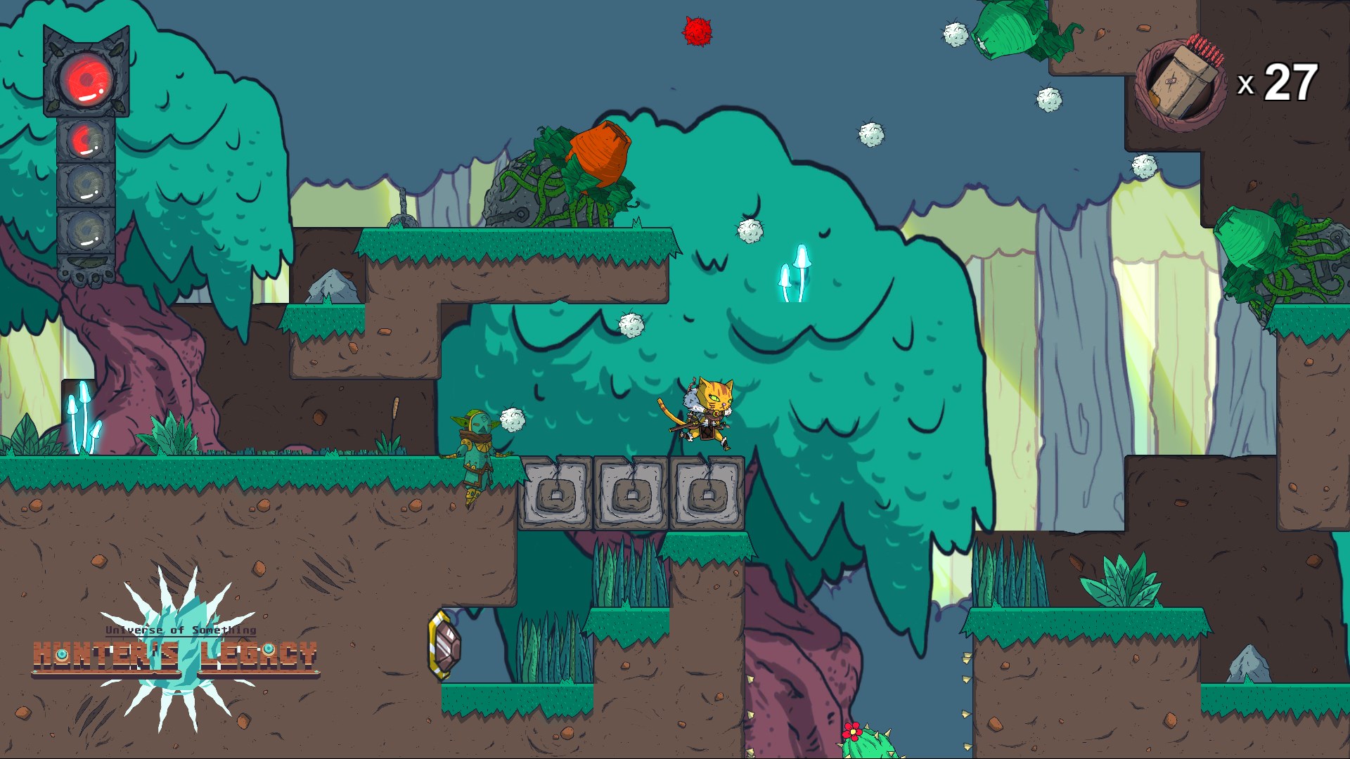Development of Hunter's Legacy began in late April, 2015. While the studio was actively seeking funding, two members of the team, an artist and a programmer, began work on Hunter's Legacy. Originally, the development was supposed to be a three-month thing for mobile, but the team realized soon that they had something bigger in their hands. Ikki's design comes from a real cat from the same name that the artist fed. This cat visited him daily for three months but suddenly disappeared. In her honor, Ikki was recreated in game form for our studio's first ever adventure! Now, after a year of working in this charming platformer, the game is available for PC on Steam!